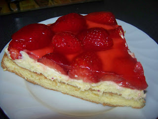 Se prepara un blat rotund in forma de tarta din 3 oua, 3 linguri de faina si 3 linguri de zahar.